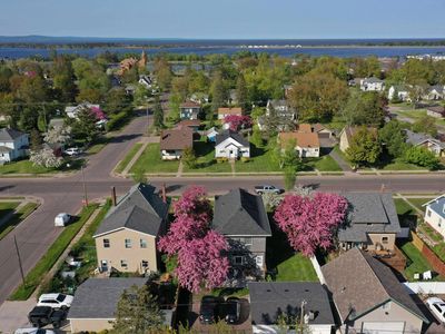 Bring the whole family to this great place with lots of room for fun. Walking distance to Superior Bay and Central Park. Enjoy the off street parking included with the house. A large kitchen and dining room to host your group. 4 bedroom 3 bath with 5 very comfortable beds so everyone can enjoy a good nights rest. There are 3 Queen size beds and 2 Full size beds at the house. Game room in the basement with a dartboard and ring toss game. Also has a bathroom and twin size pullout sofa. Located about 10 minutes away the marina.